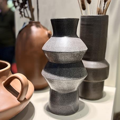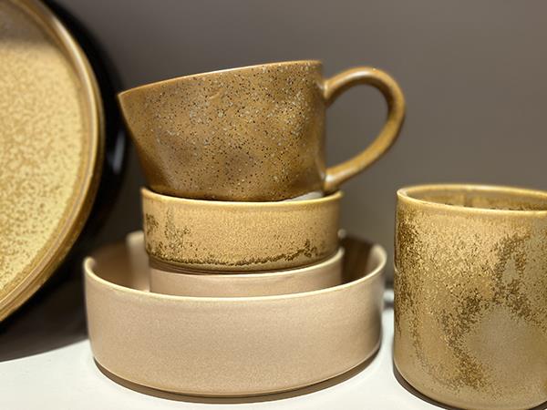 Colour is earthy and naturally inspired, textured glazes have a rustic patinated look, mimicking aged metal, stone and wood.
