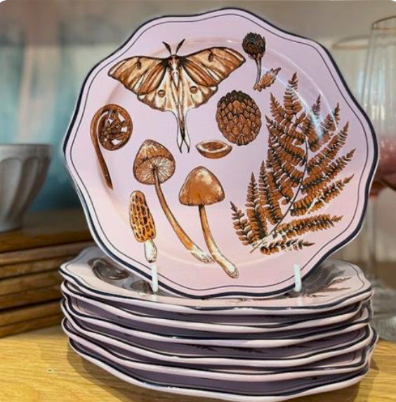 Illustrative side plate designs from Anthropologie would look just as sweet on a wall as the tea table