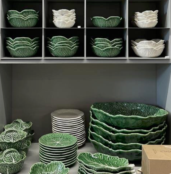 This classic look makes a re-appearance every few years and is always a lot of fun! Cabbage and lettuce shaped dishes (when done well) have the perfect balance of realistic detail and just the right shade of leafy green.