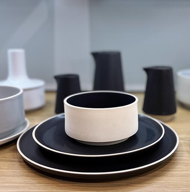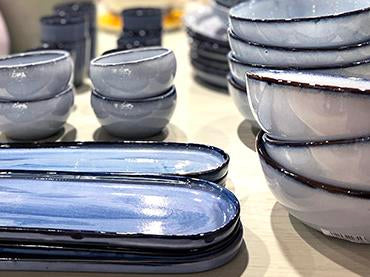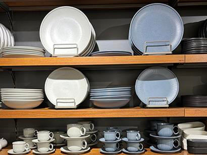 Harmonious satin hues make for a cool, calming and collectable core dinnerware display.