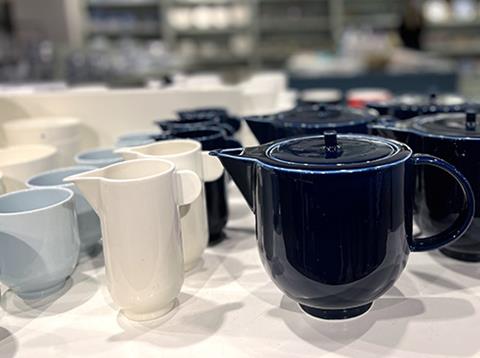 Intriguing modern shapes are further highlighted by colouring individual pieces in contrasting shades.