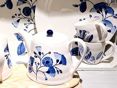 Hand painted floral motifs in blue and white tick the boxes for traditional country kitchen and cool coastal style.