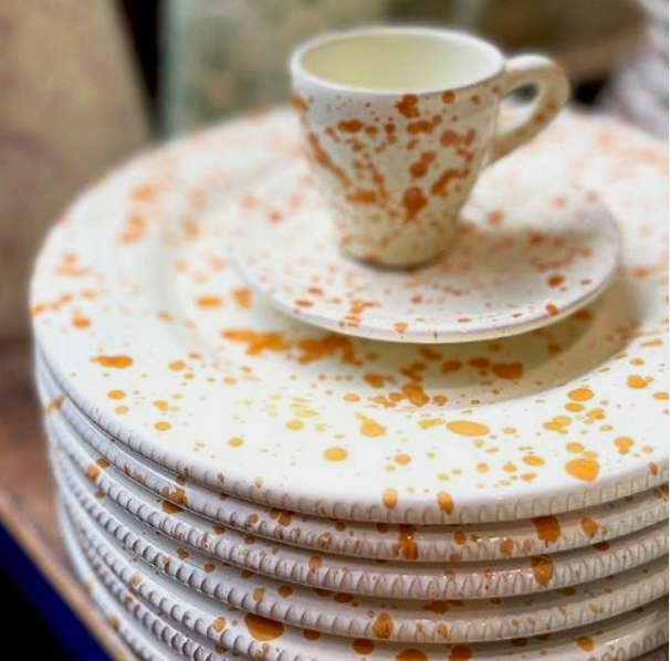 While this look isn't new, it has evolved over the last few years. Along with loose, hand-brushed pattern and naive geometrics, it would seem that the speckle trend is here to stay. Enthusiastically splattered colour brings the fun to everyday dishes.